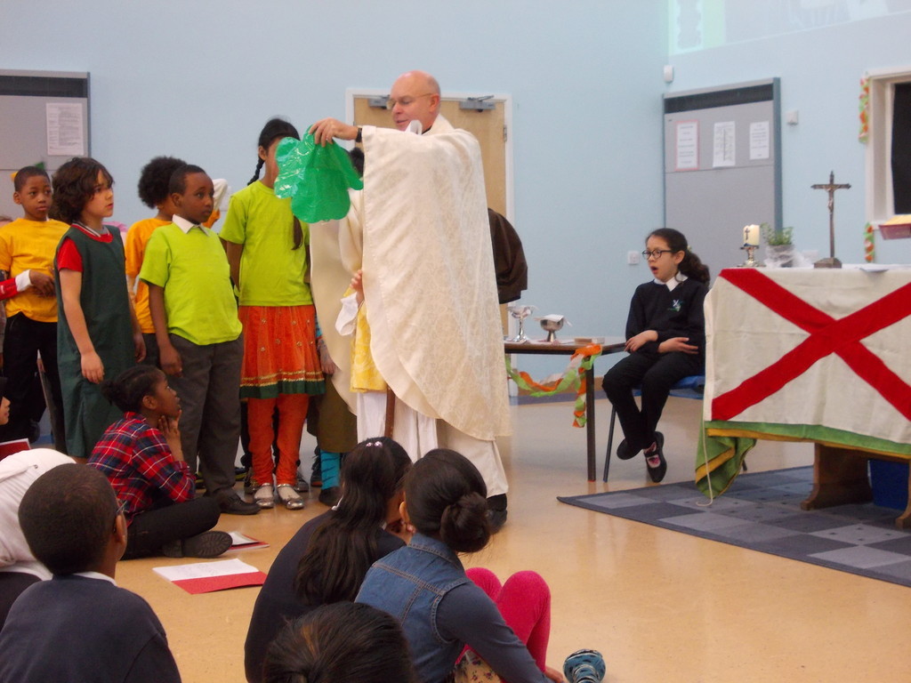 The parish mass on Friday mornings is part of our school assembly programme. This includes the full Eucharist. We have a number of children who are preparing for their first communion or who have been confirmed and who take communion. The Parish Priest leads confirmation classes in school, during our school time. This is very successful and has strengthened links between Church and school.